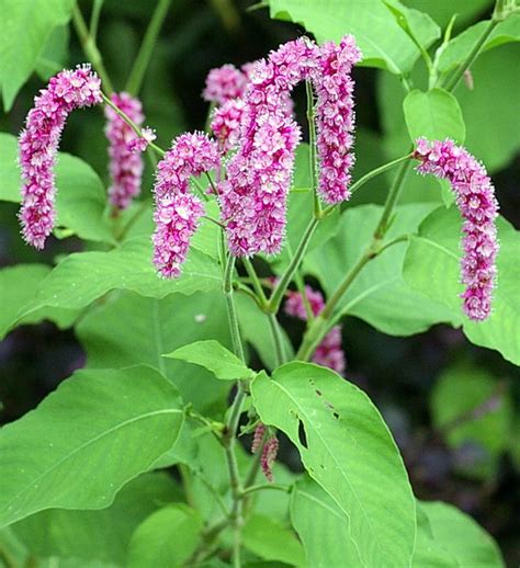 その先に稲穂状に米粒大の濃桃色の小花を多数つけた花穂を垂下して咲かせる